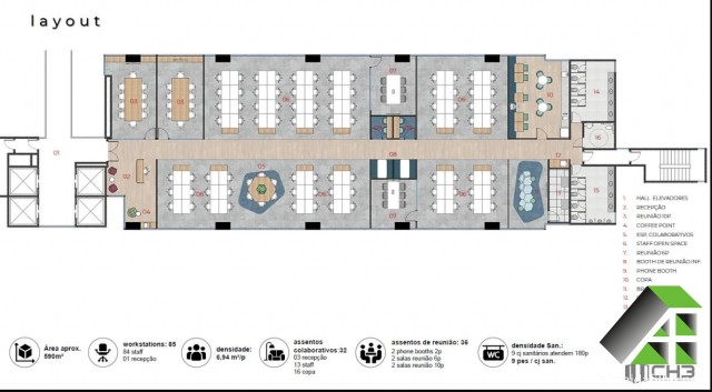 ar condicionado (Central), forro suspenso (modular), sprinkler, detector de fumaça, controle de acesso, CFTV, BMS, central de segurança, restaurante (Coffee Shop), Transporte público: ônibus, trem